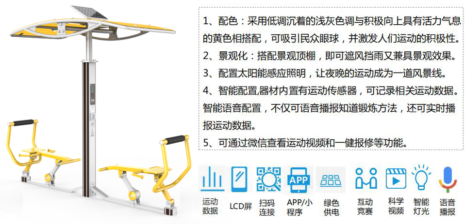 熊猫体育全民健身产品涵盖健身路径、运动场馆、篮乒气羽排等产品,分为多个系列,先进的制造工艺、严苛的质量检测,确保产品性能优良、品质安全可靠,让运动简单科学。并将全民健身器材(户外路径器材、体育场馆等产品)进行智能化升级和互联,实现全人群覆盖、全场景智能,让运动赞美生活。