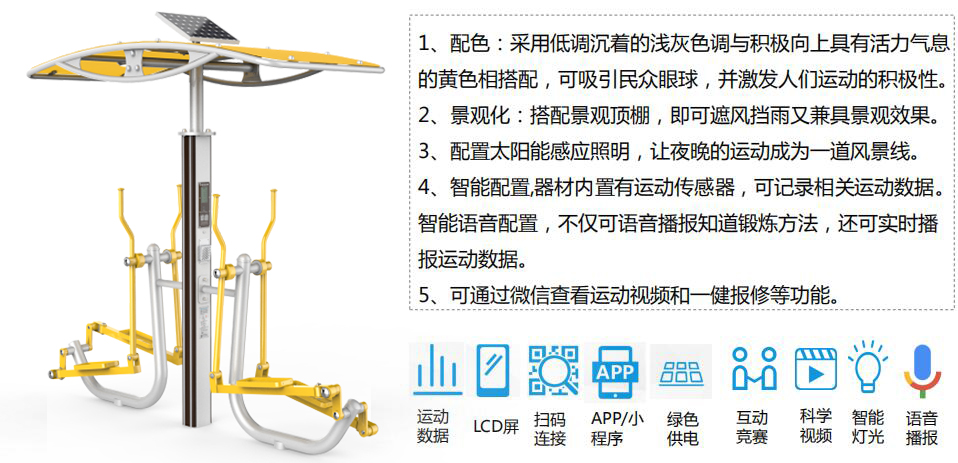 熊猫体育全民健身产品涵盖健身路径、运动场馆、篮乒气羽排等产品,分为多个系列,先进的制造工艺、严苛的质量检测,确保产品性能优良、品质安全可靠,让运动简单科学。并将全民健身器材(户外路径器材、体育场馆等产品)进行智能化升级和互联,实现全人群覆盖、全场景智能,让运动赞美生活。