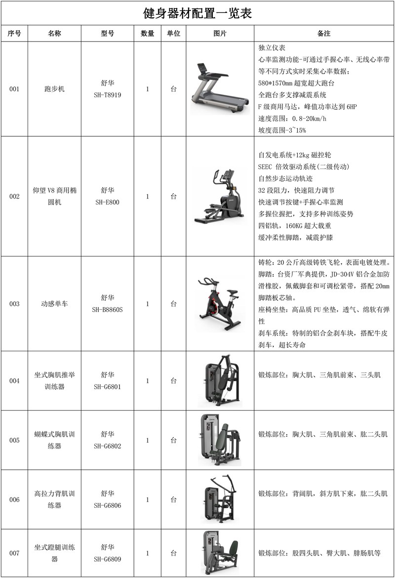 1.熊猫体育V9智能跑步机SH-T8919*5台-独立仪表-简洁大气,全新外观设计,健康运动新选择;心率监测功能,可通过手握心率、无线心率带等不同方式实时采集心率数据;580*1570mm超宽超大跑台-跑感舒适,跑台整体安全稳定;全跑台多支撑减震平台,保证跑台超强支撑力,达到180kg支撑,满足专业健身房需求。F级商用马达-超强马达,AC 3.0HP 交流,峰值功率达到6HP,F级商用品质。速度范围达到0.8-20km/h;V9跑步机可实现跑台扬升功能,坡度范围-3~15%,满足客户不同的锻炼需求。