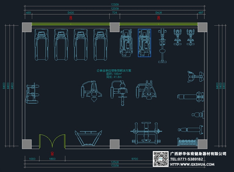 此方案要求面积小于105m²,适用于企事业单位、酒店会所、楼盘社区、学校、私教工作室等健身场所,能满足20-35人同时健身使用。(方案根据场地空间大小、预算、产品需求等进行配置仅为启发性参考)