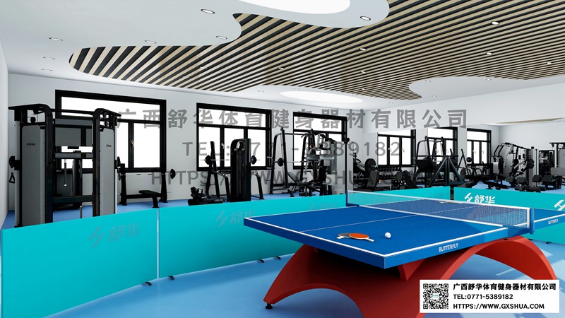 主要配置乒乓球桌(1张),乒乓球是全身运动,提升手眼协调和反应能力,帮助员工在紧张工作后放松身心,缓解压力,多人参与,促进员工互动,增进友谊和团队合作。