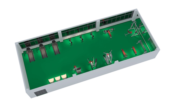 此方案要求面积不小于150平米,我们会根据您个人的实际情况和场地面积而定。此方案推荐小型健身工作室、单位健身房、酒店会所健身房、学校等健身房配置。