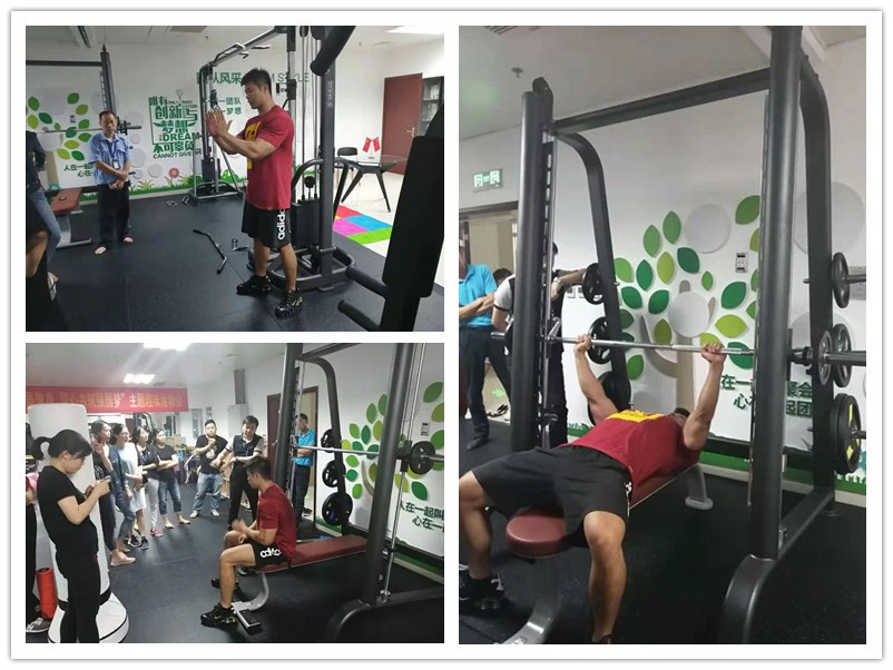 2019年8月26日,南宁某集团职工健身房自6月在广西熊猫体育采购室内健身器材以来,广西熊猫体育根据其职工的男女比例及健身需求,为该集团员工提供健身教练上门免费培训健身器材使用及提供健身知识讲座,科学的运动教学指导。经过有趣互动交流,让职工在轻松愉悦的气氛下感受到运动的乐趣。