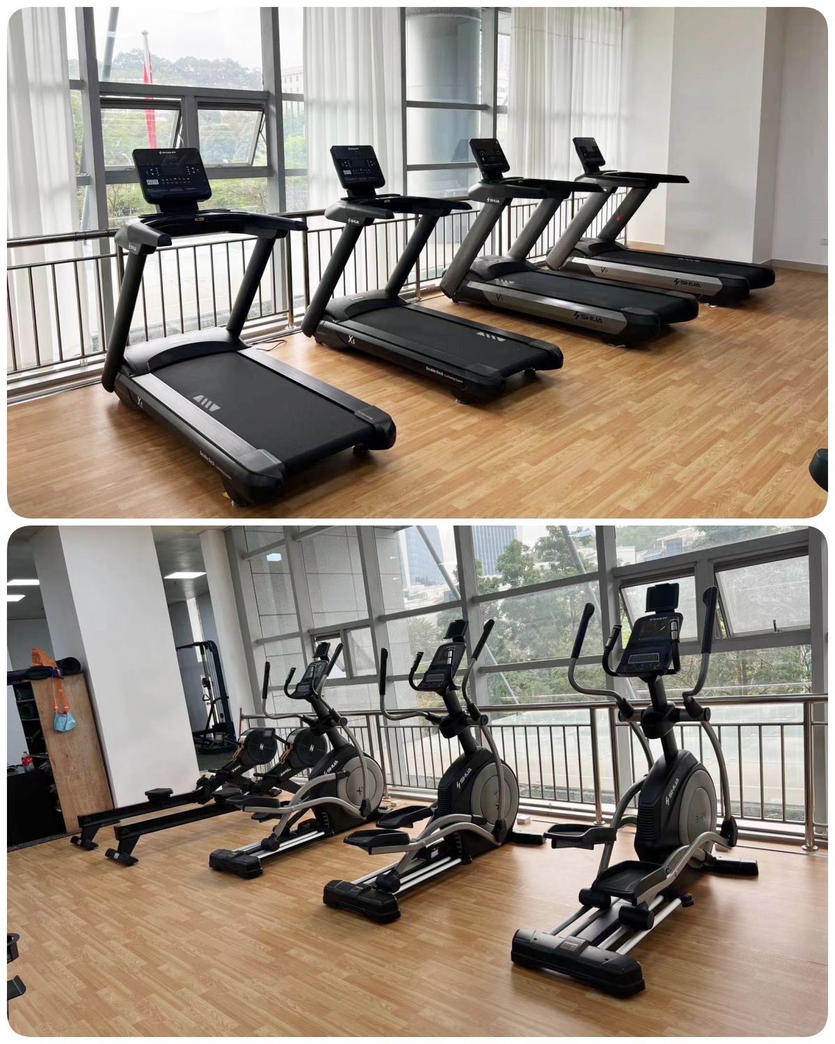 有氧区域主要配置了熊猫体育X5跑步机、X5-E椭圆机、划船器SH-R8100、动感单车。有氧器材可以改善心肺功能、促进血液循环、提高新陈代谢、提升身体素质、提供了多样化的锻炼选择、能有效缓解工作压力和焦虑情绪,从而提高注意力和专注力,使员工在工作中更加冷静、高效。
