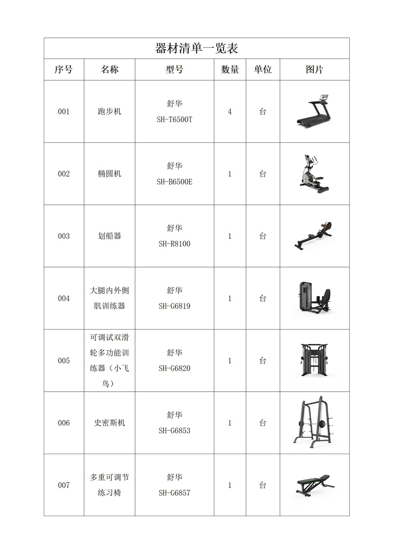 50m²企事业单位健身房配置清单:
