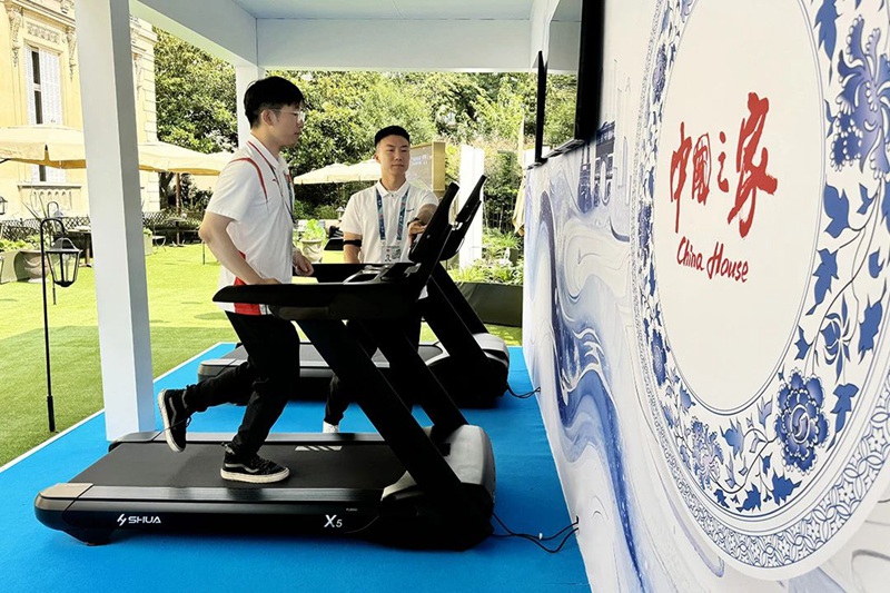 * 巴黎奥运会“中国之家”现场,体育爱好者体验熊猫体育X5跑步机