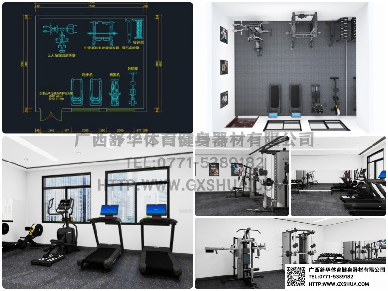 企事业单位健身房是员工健康的守护站。久坐、长期面对电脑等工作模式容易引发各种健康问题,而健身房里的专业设备和训练空间,可以帮助员工预防和缓解诸如颈椎痛、腰椎间盘突出、肥胖等问题,提高身体的柔韧性、力量和耐力,保障员工以良好的身体状态为单位创造价值。基于这些独特功能,我们为这个48m² 的小型企事业单位健身房设计了如下配置方案。
