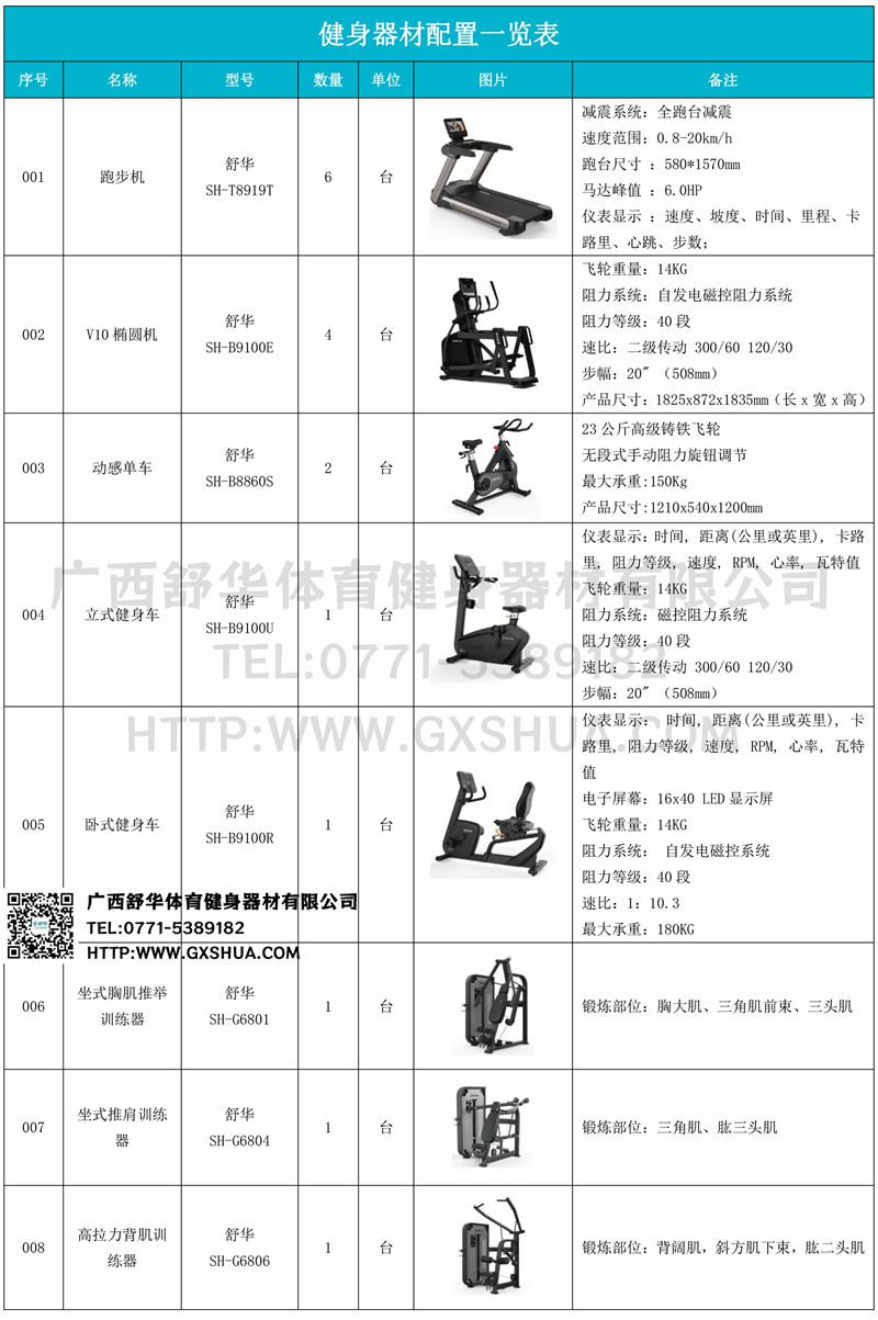 1.熊猫体育V9跑步机SH-T8919T*6台-V9+采用全跑台减震设计,为跑者提供舒适的落脚地感和稳定的跑步支撑,良好的缓冲防护,降低膝关节受伤风险。商用大跑台,为跑者提供从容奔跑空间,180kg承载力,580*1570纯跑台面积,满足专业健身需求。V9+采用F级商用马达,6HP峰值马力,20km/h最高速度,提供源源不断的动力。V9+内置健身直播软件,每周提供直播课程,内含大量专业线上健身点播课程,可为健身房不同人群提供多样化健身课程服务。