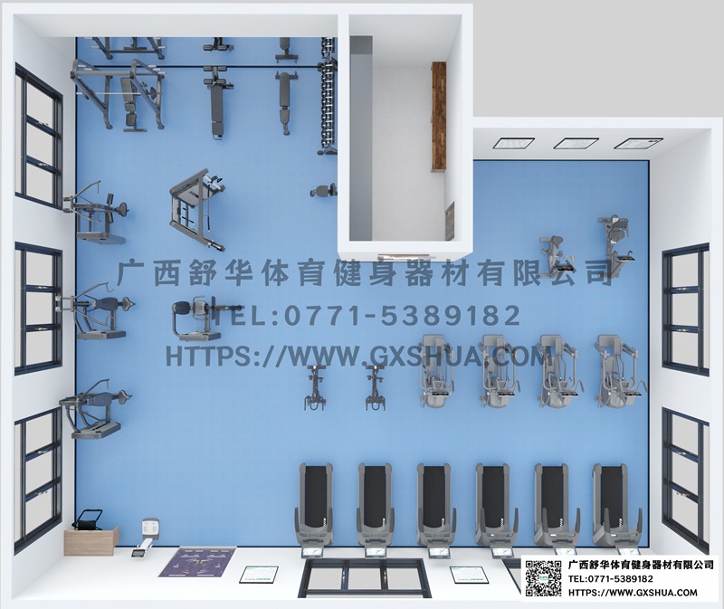 推胸(1台)、推肩(1台)、高拉力背(1台)、蹬腿(1台),可满足胸部、腿部、背部、手臂等全身肌肉的训练,通过调整不同的位置和角度,可以实现对不同肌肉群的针对性训练。